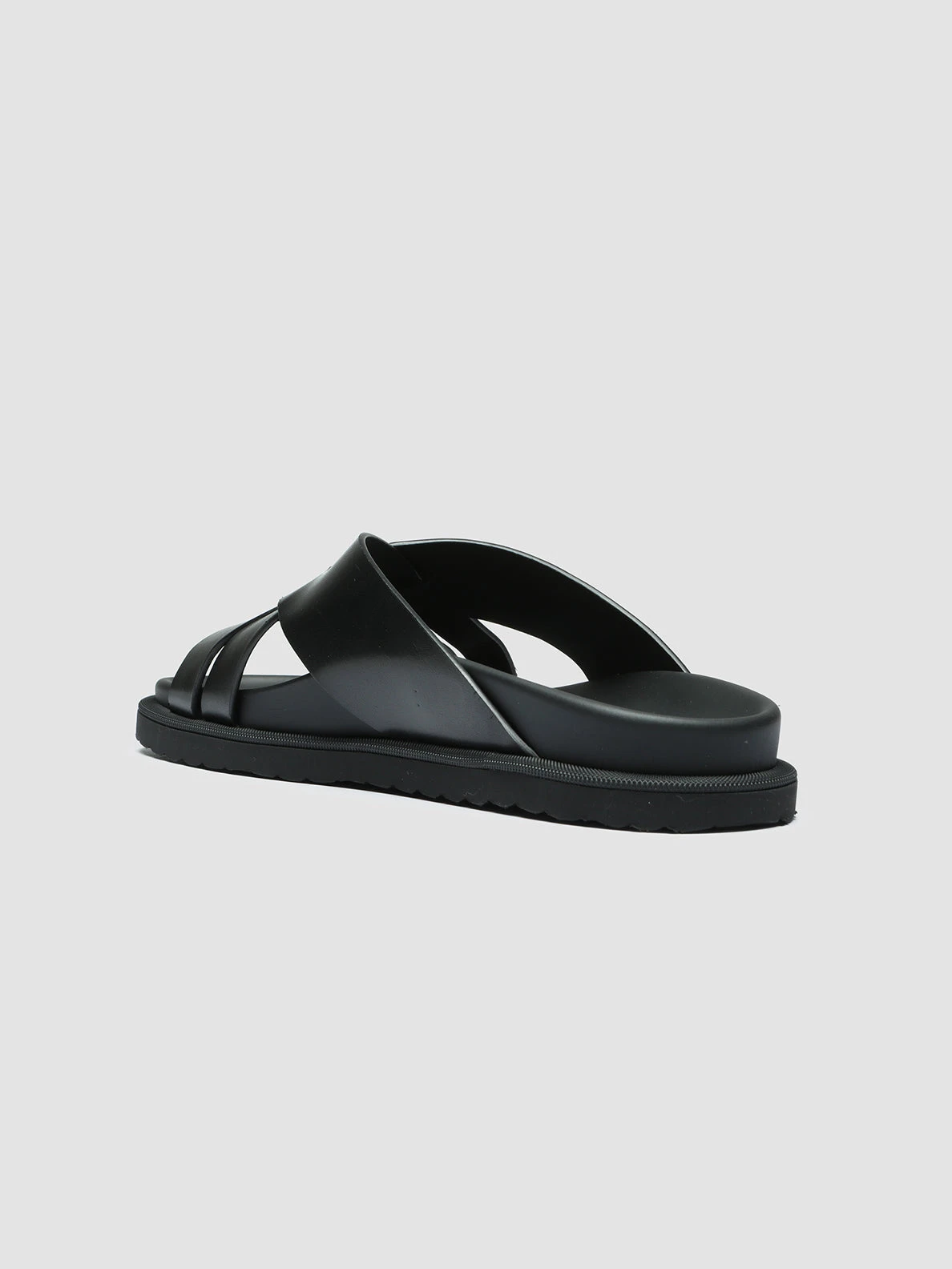 Easy to combine and wear, our Charrat slides are handcrafted from fine black smooth leather. They reveal an elegantly crossed strap band, round toe, molded insole and a flat natural rubber sole with a non-slip bottom.
