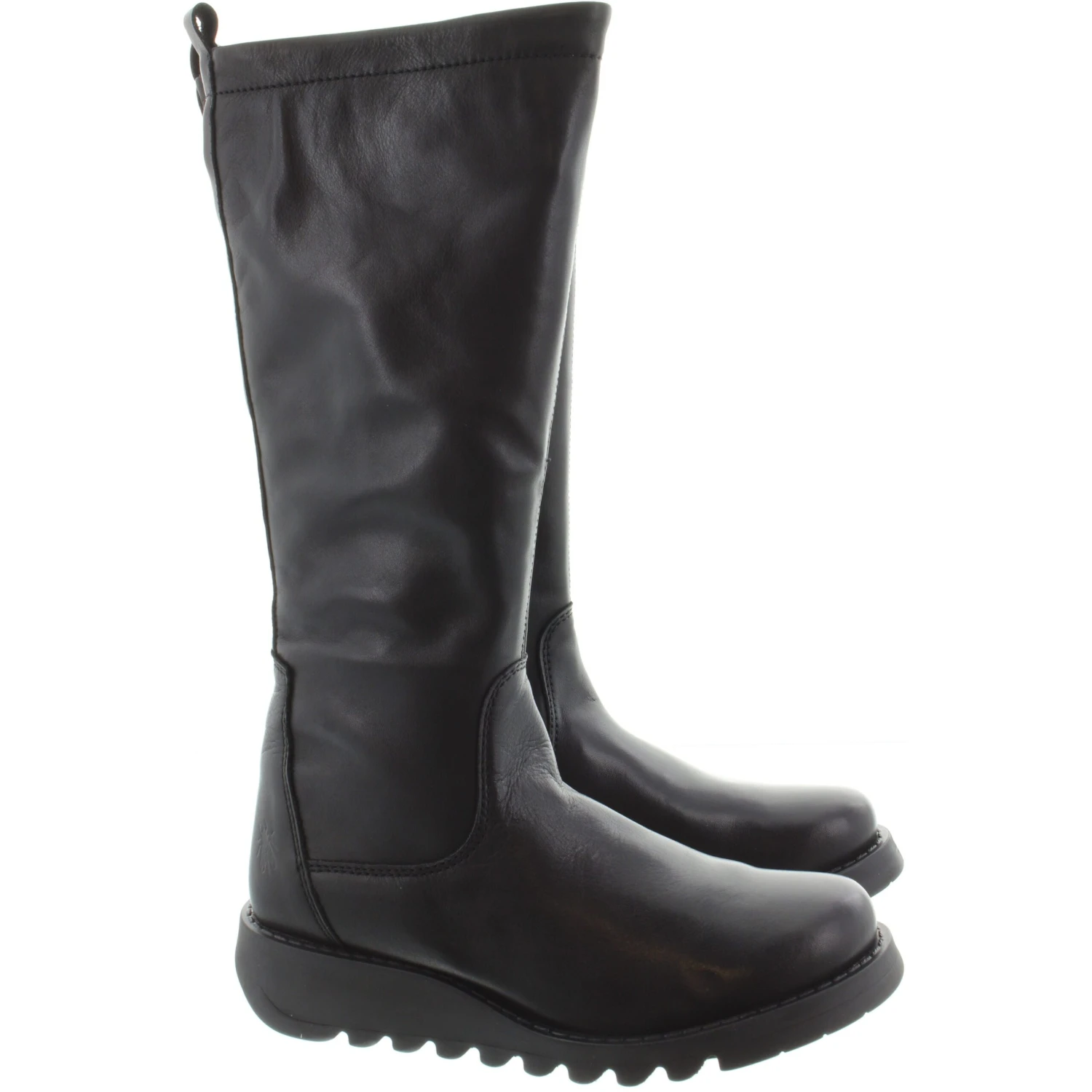 - Fly LondonĀ Seme KneeĀ bootsĀ are a classic knee boot with a low wedge heel and have aĀ luxuriousĀ blackĀ leather upper giving them a clasy feel. A great look for all year round!