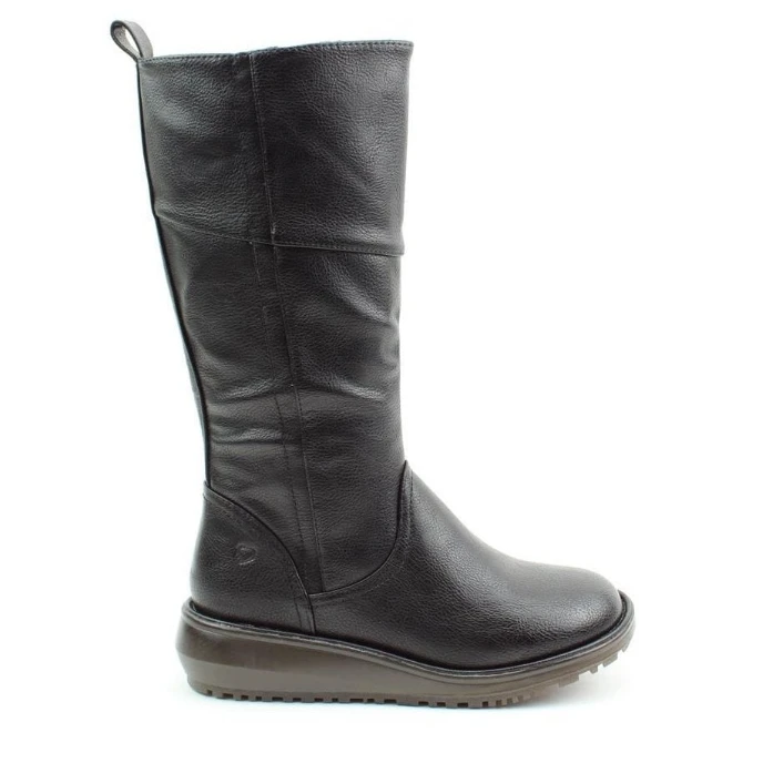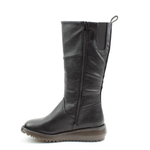 Casual ladies tall boot featuring Heavenly Feet’s new 3-heart out-sole. Vegan friendly. Soft man-made upper with stitched panel design and a light burnished finish. Beautifully soft comfort textile lining. Removable foot bed featuring textile covered Memory Foam for supreme underfoot comfort. Full length side zip and pull tab for ease of fitting.
