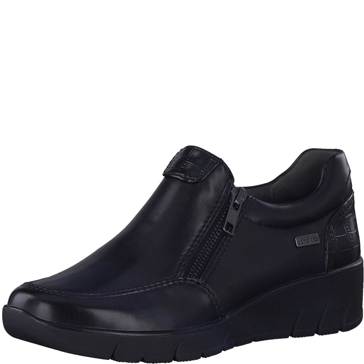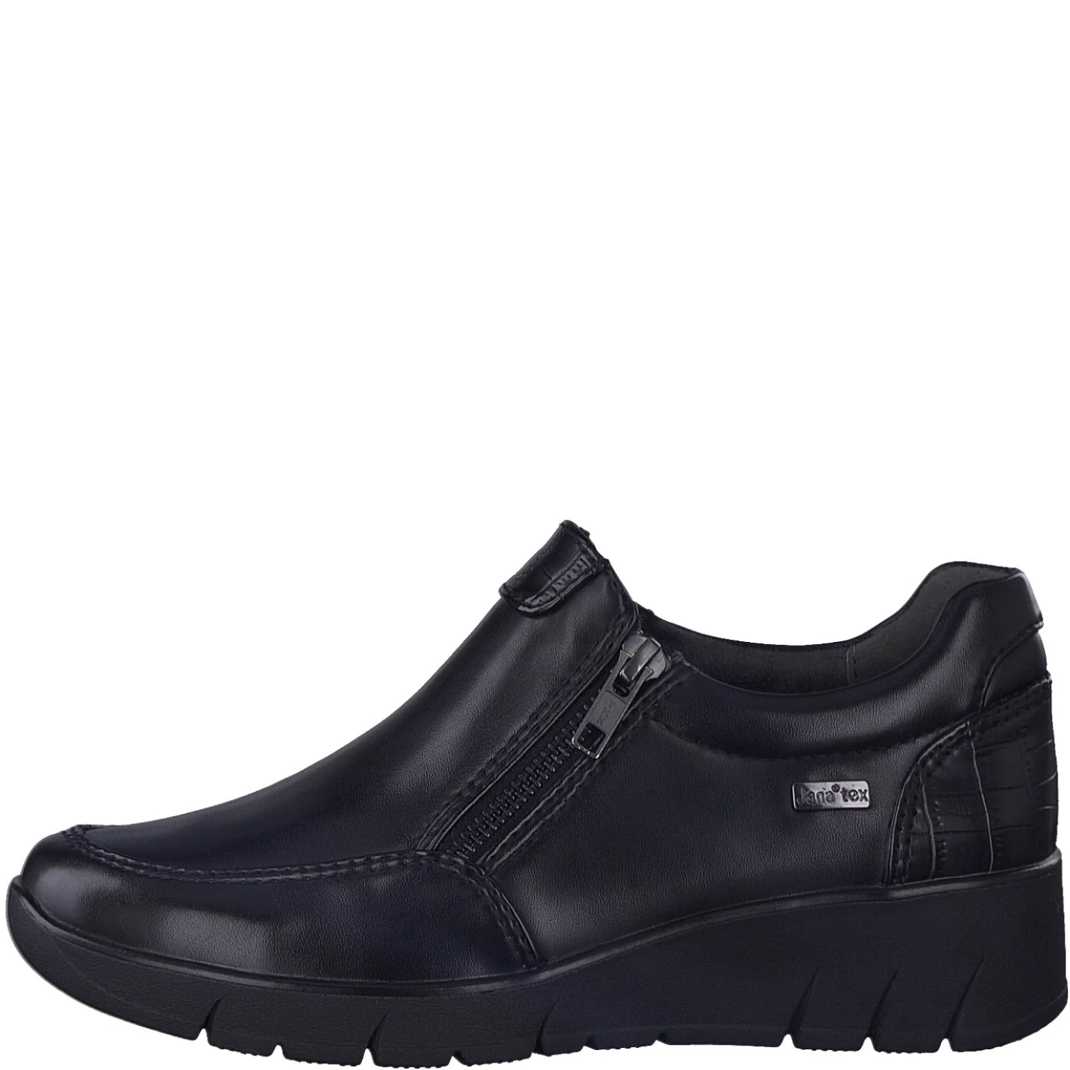 This shoe from the Jana Range features a soft Flex Sole and a tex coating making it water resistant. The double sided zip is great for ease of getting on and off especially if you have a high instep. The jana relax fit inner sole is soft and moulds to the foot ensuring all day comfort. These make a great work shoe.