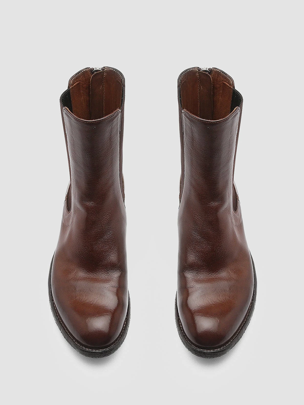 Effortless style and comfortable fit for our versatile Lexikon Chelsea boots. They are made with the best craftsmanship techniques from brown fine leather and are defined by a back zip fastening elasticized side accents rounded almond toe and a leather sole with a low stacked heel and tread rubber inserts.