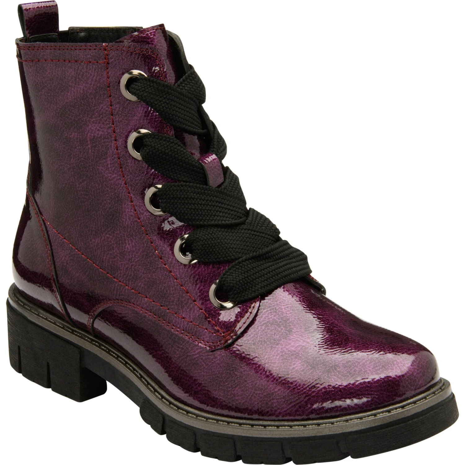 The brilliant hi shine patent and wonderful colours combined with a low heel make this an excellentĀ ankle boot for all dayĀ at work and leisure.