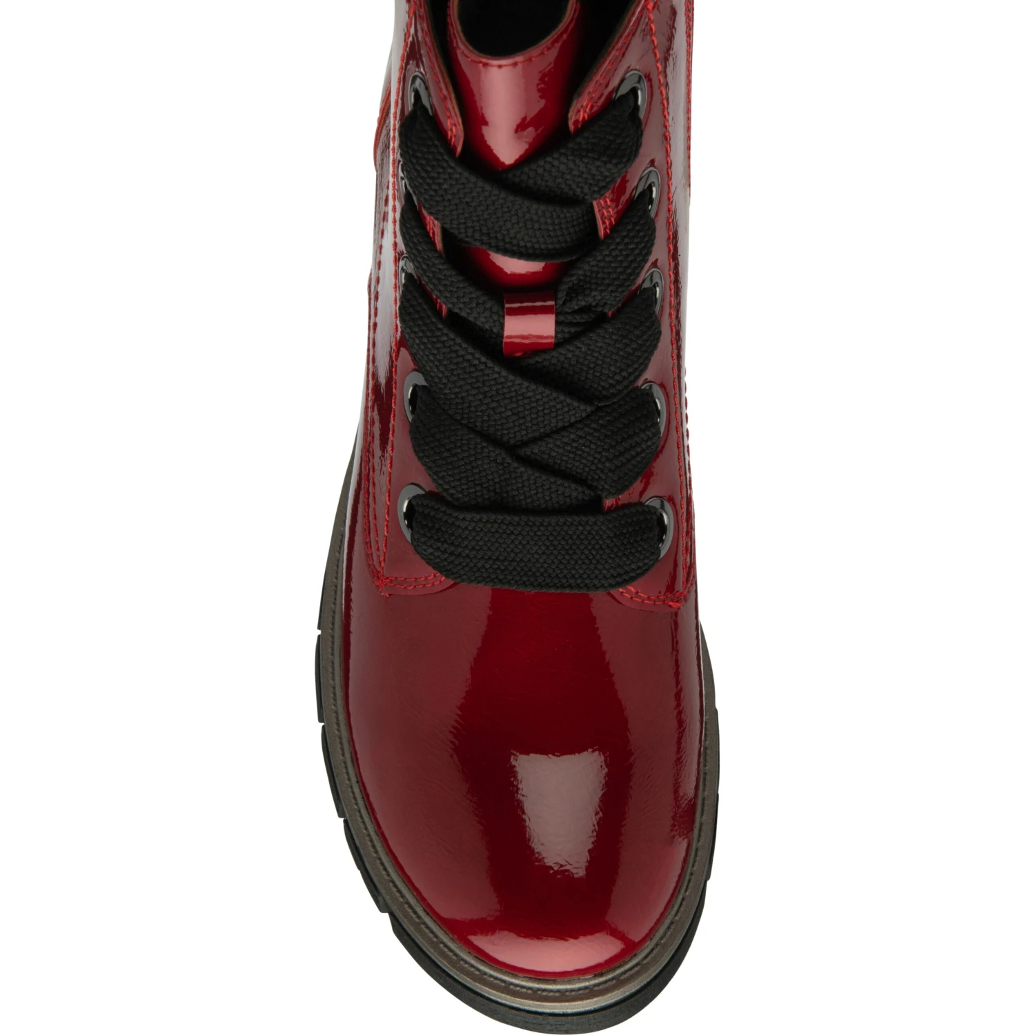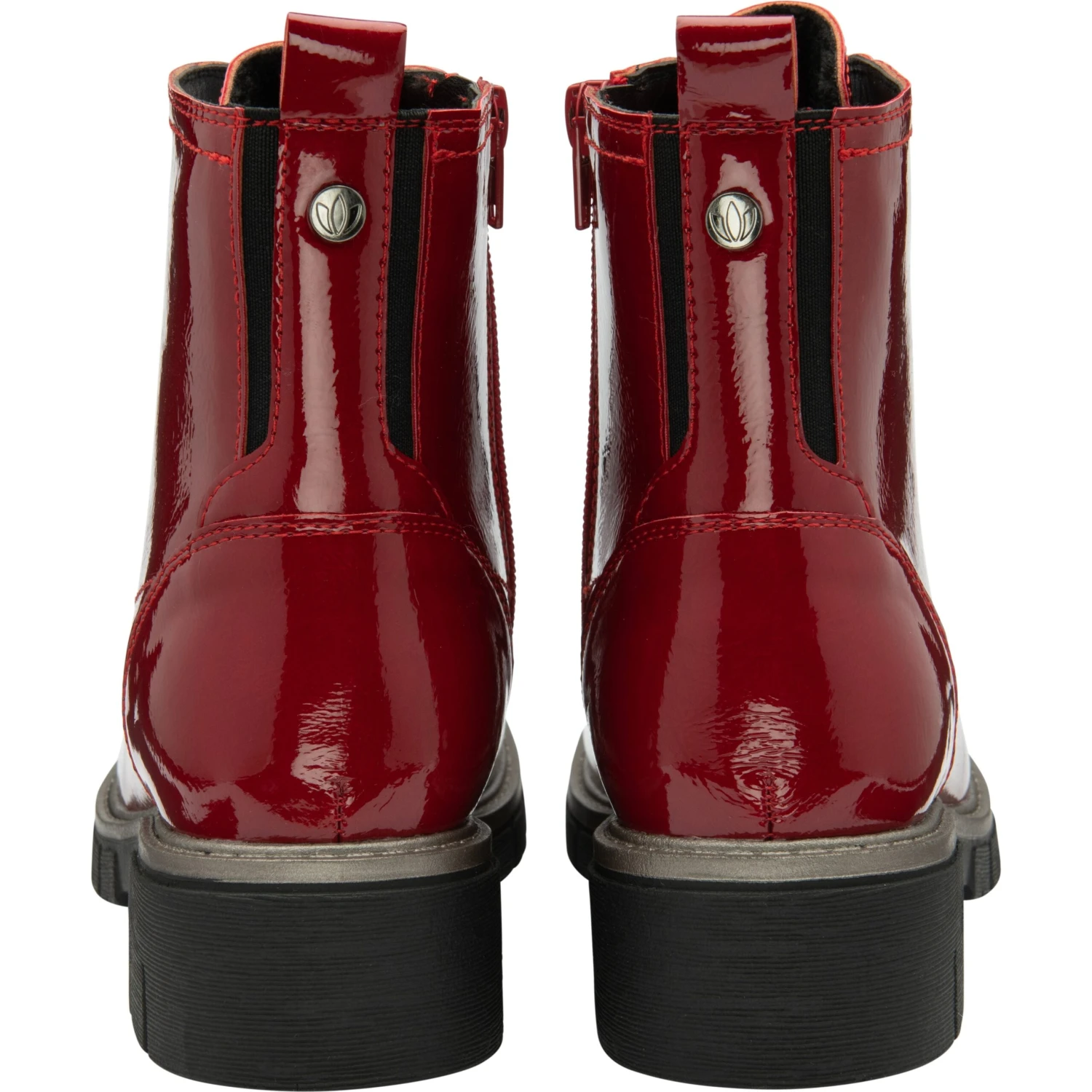 The brilliant hi shine patent and wonderful colours combined with a low heel make this an excellent ankle boot for all day at work and leisure.