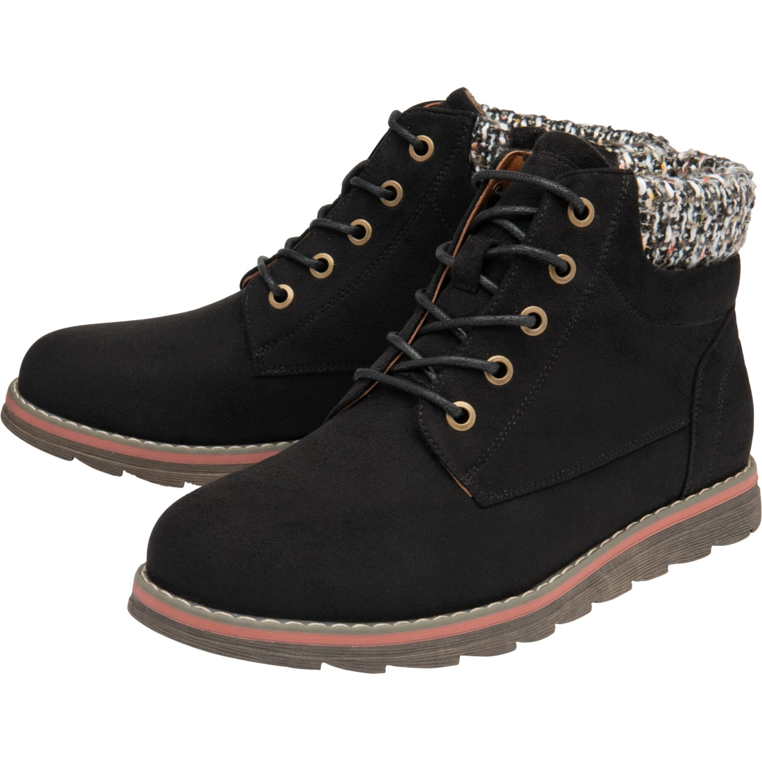For a thoroughly modern-day aesthetic, add the almost flat Lotus Cedar lace-up ankle boot to casual looks. Influenced by the ever-popular hiker look, this Lotus women’s lace-up green boot boasts an imi-suede upper, a multicoloured knitted ankle collar, metal eyelets and a serrated sole unit.