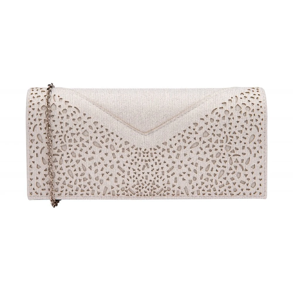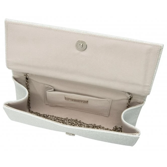 The perfect accompaniment to special occasion looks is the stunning Lotus Esmee clutch bag. Intricate cut out detailing, which can also be found on the coordinating Lyla court shoe, is featured on the front panel of this stunning silver handbag. This shimmering textile clutch bag also incorporates a magnetic press stud fastening, an internal slip pocket and a detachable chain shoulder strap.Â