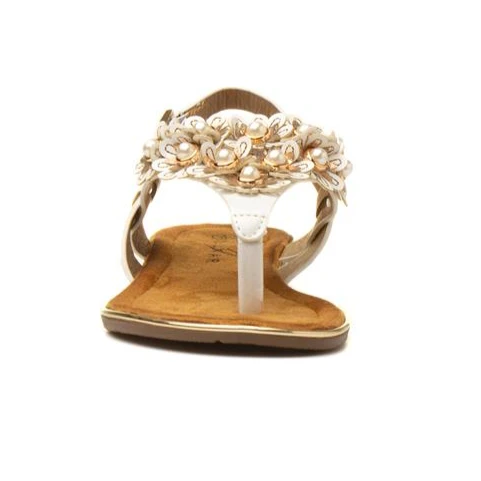 The Kinsley sandal has been designed with a supportive strap design at the back of the sandal this descends into a toe post with layered floral detailing on the top of the sandal. With a soft padded insole the Kinsley is a need this summer woman’s sandal for sure, the metallic inserts on the layered flowers make it that more desirable.