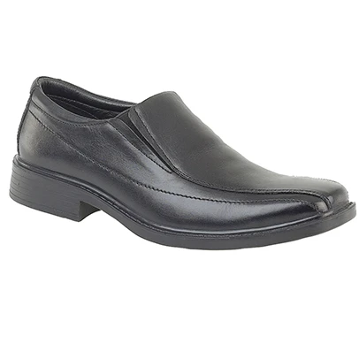 This lightweight black leather smart slip on shoe is ideal for occasion or day to day work wear. The supersoft leather lining and wide fitting adds long lasting comfort. Available in sizes 40-46.