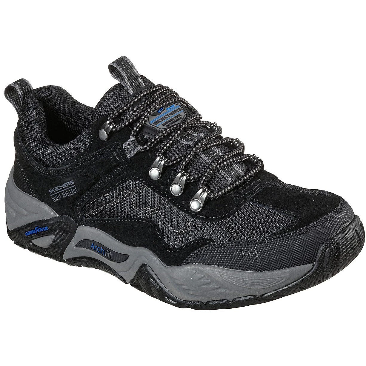 Ensure you have the support you need for trail walking in the Skechers Arch Fit® Recon – Harbin shoe. This trail walking shoe features a water-repellent leather, synthetic and mesh fabric upper with a lace-up front, removable Arch Fit® insole and Goodyear® Performance Outsole.