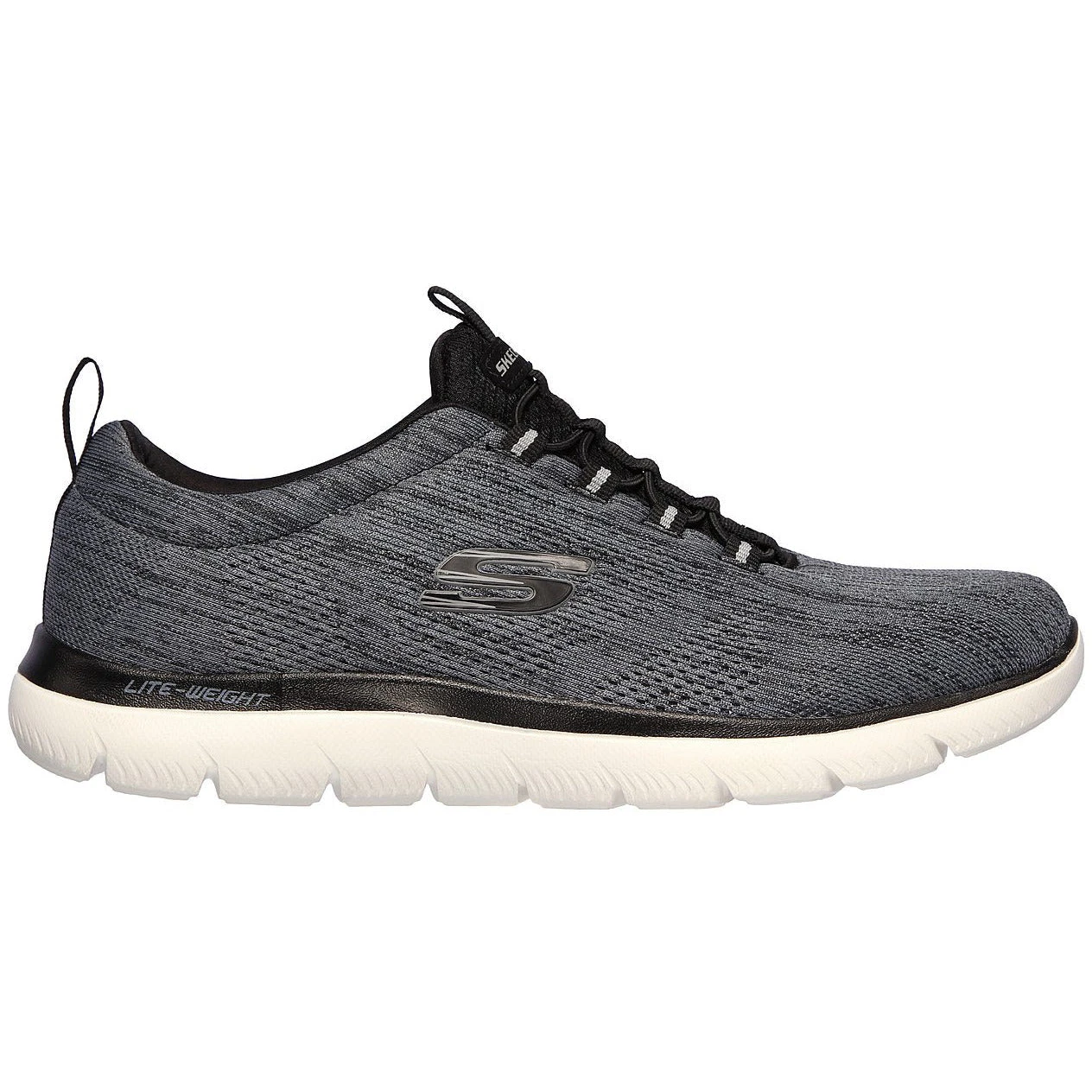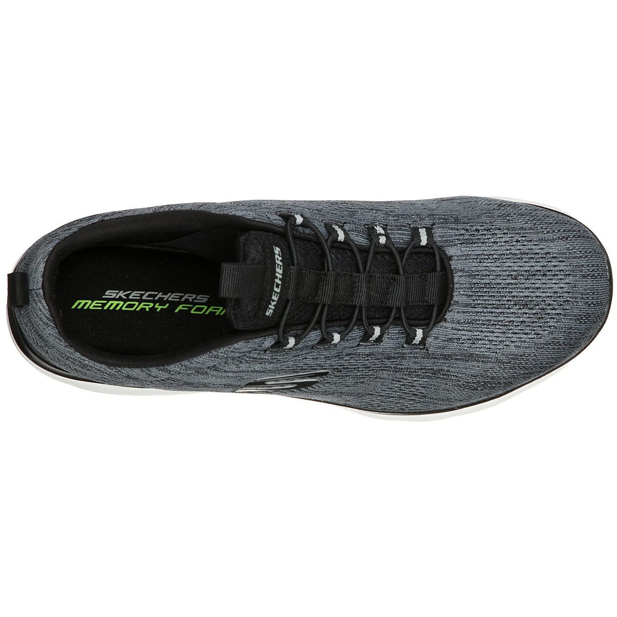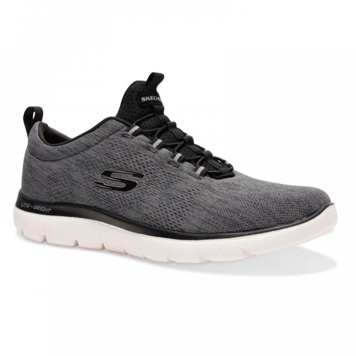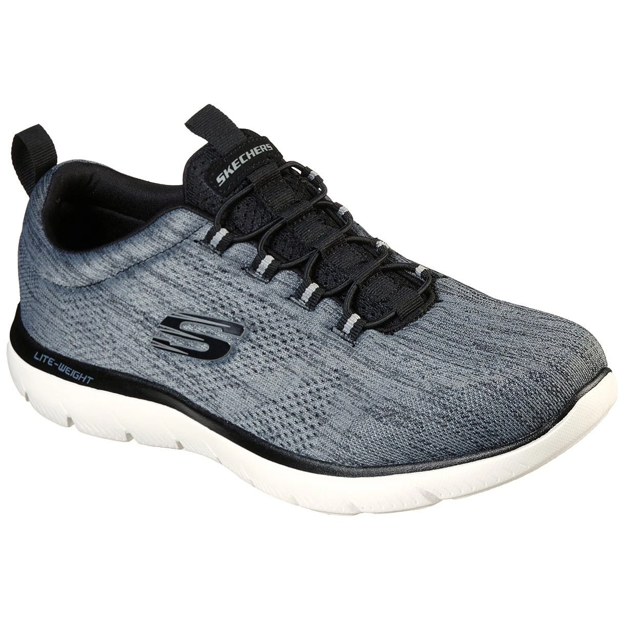 Sleek, soft style harmonises with cushioned comfort in the SKECHERS Summits – Louvin shoe. Engineered mesh fabric nearly one piece upper in a bungee laced slip on athletic training sneaker with woven-in accents. Memory Foam insole.